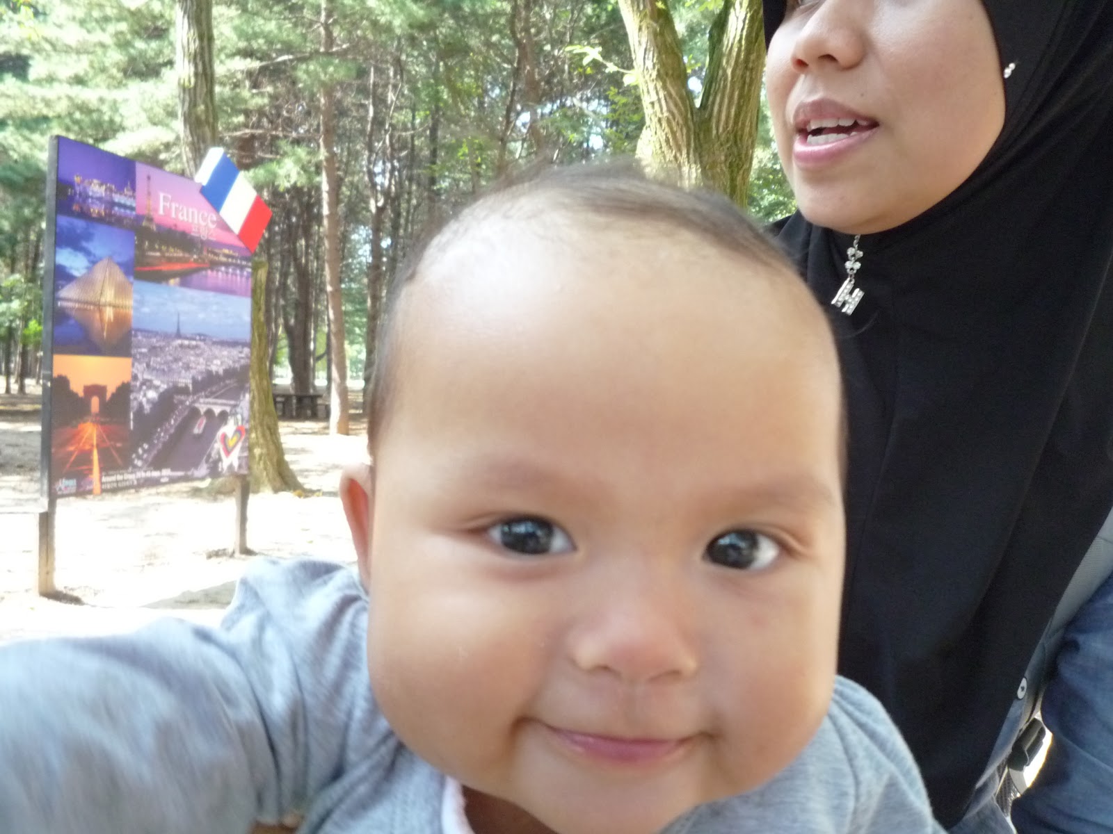 Naik semput aku dokong Helena.Dia tak nak duduk dalam Stroller.Ni aku lari lelaju berentak2 kaki.Suka lah dia.Sah org kata aku gila ni.Lagipun cuaca kat Nami Island ni sangat lah sejuk2 sedingin salju gitu...Indah dan nyaman je..Macam dalam aircond kat opis..Walaupun ada terik mentari tapi tak panas.